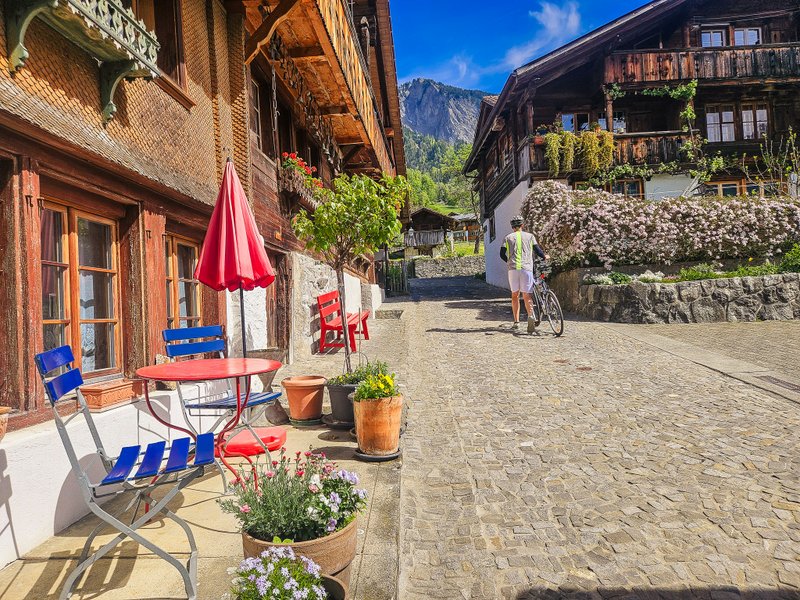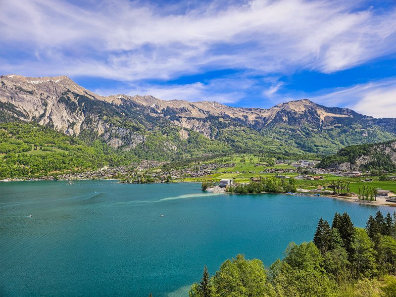 My jsme si za výchozí bod naší cyklotrasy vybrali Interlaken (logicky proto, že jsme ho měli nejblíž). Ve skutečnosti si ale můžete trasu přizpůsobit úplně podle sebe – začít třeba v Brienz nebo kdekoliv jinde po cestě, kde se dá pohodlně zaparkovat nebo přijet vlakem.